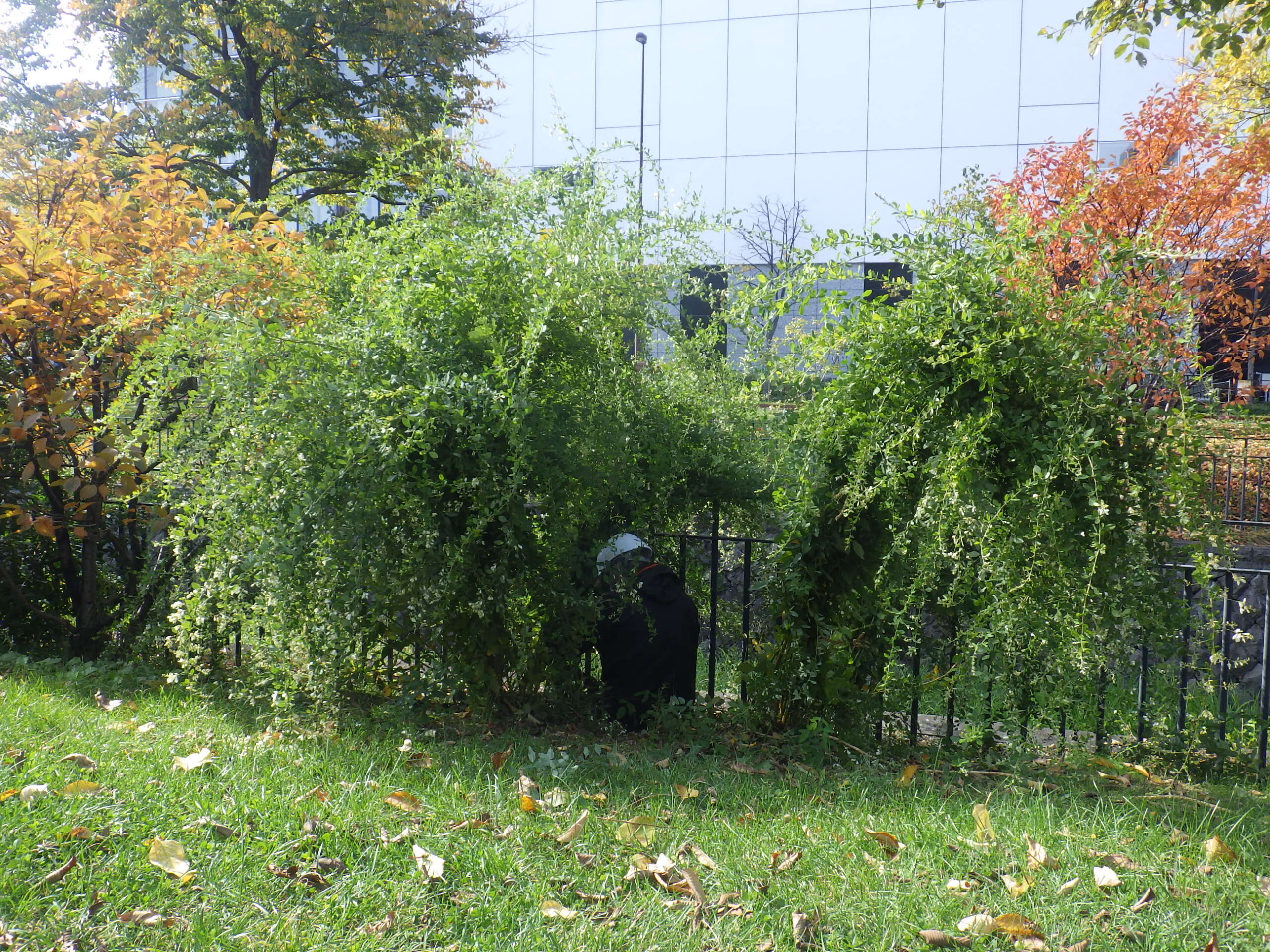 11月には、いよいよライラックなどの冬囲いが始まります。