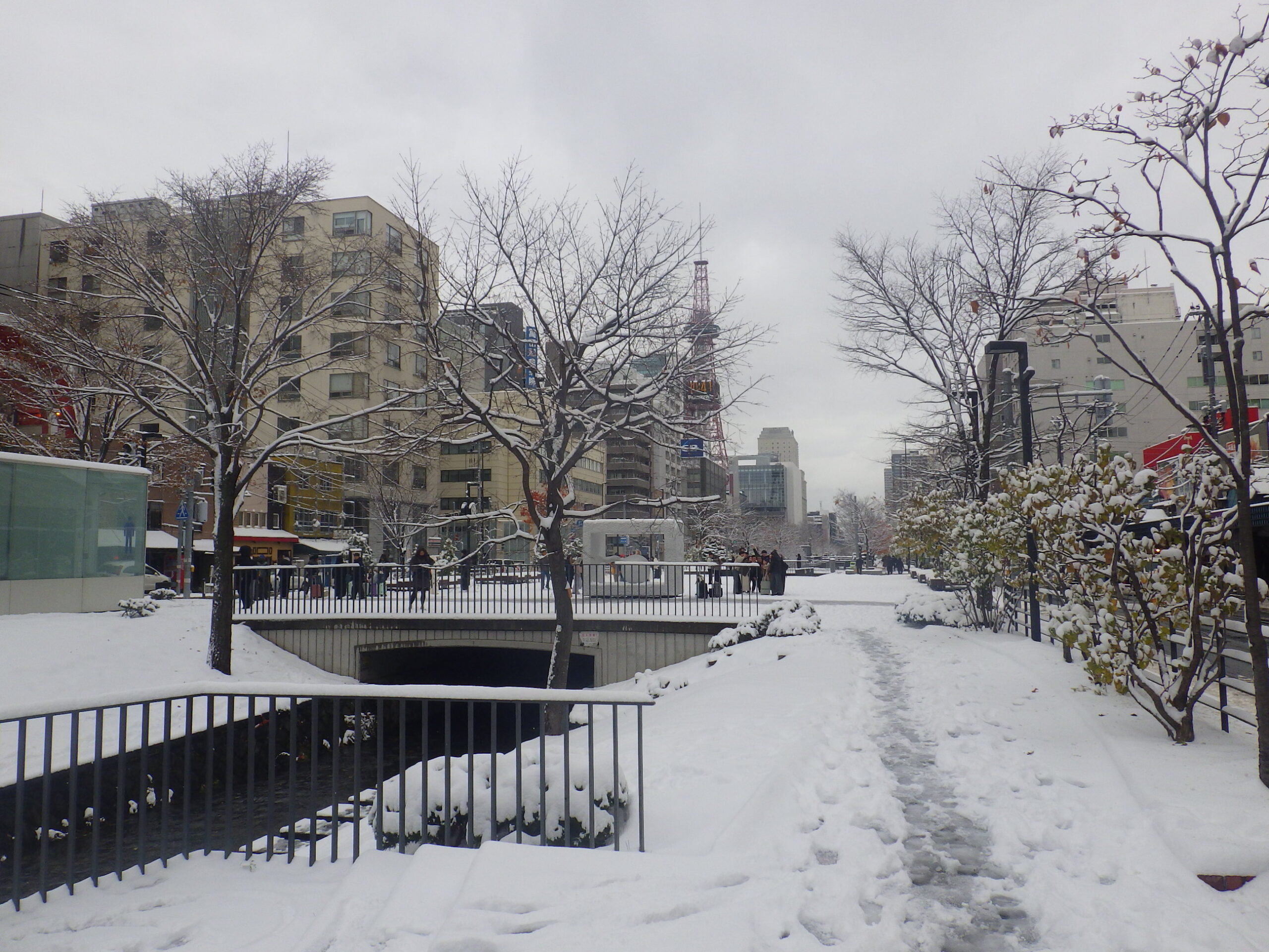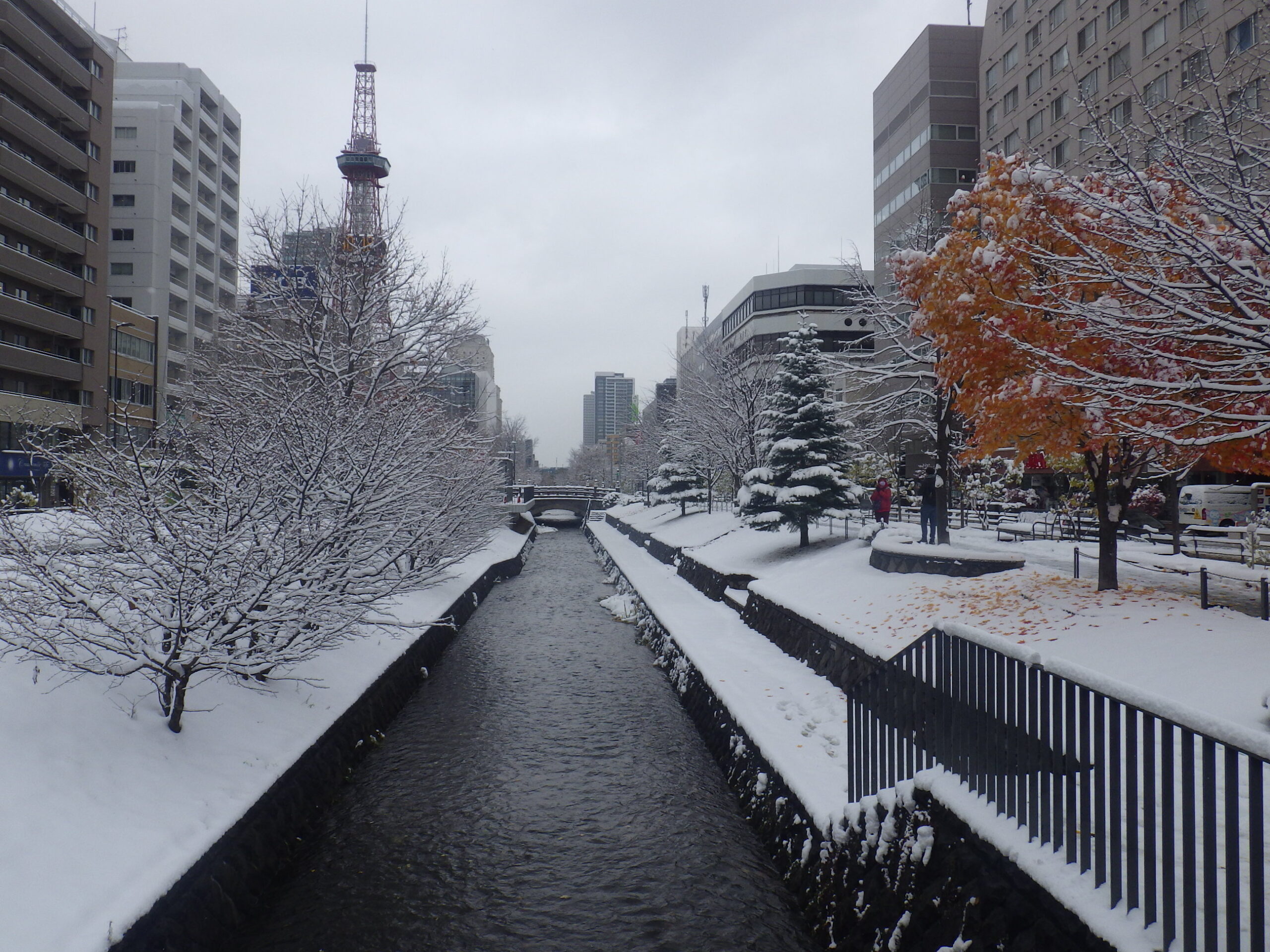 11月8日土曜日、昨夜から降り続いた雪が積もりました。南1条の様子です。