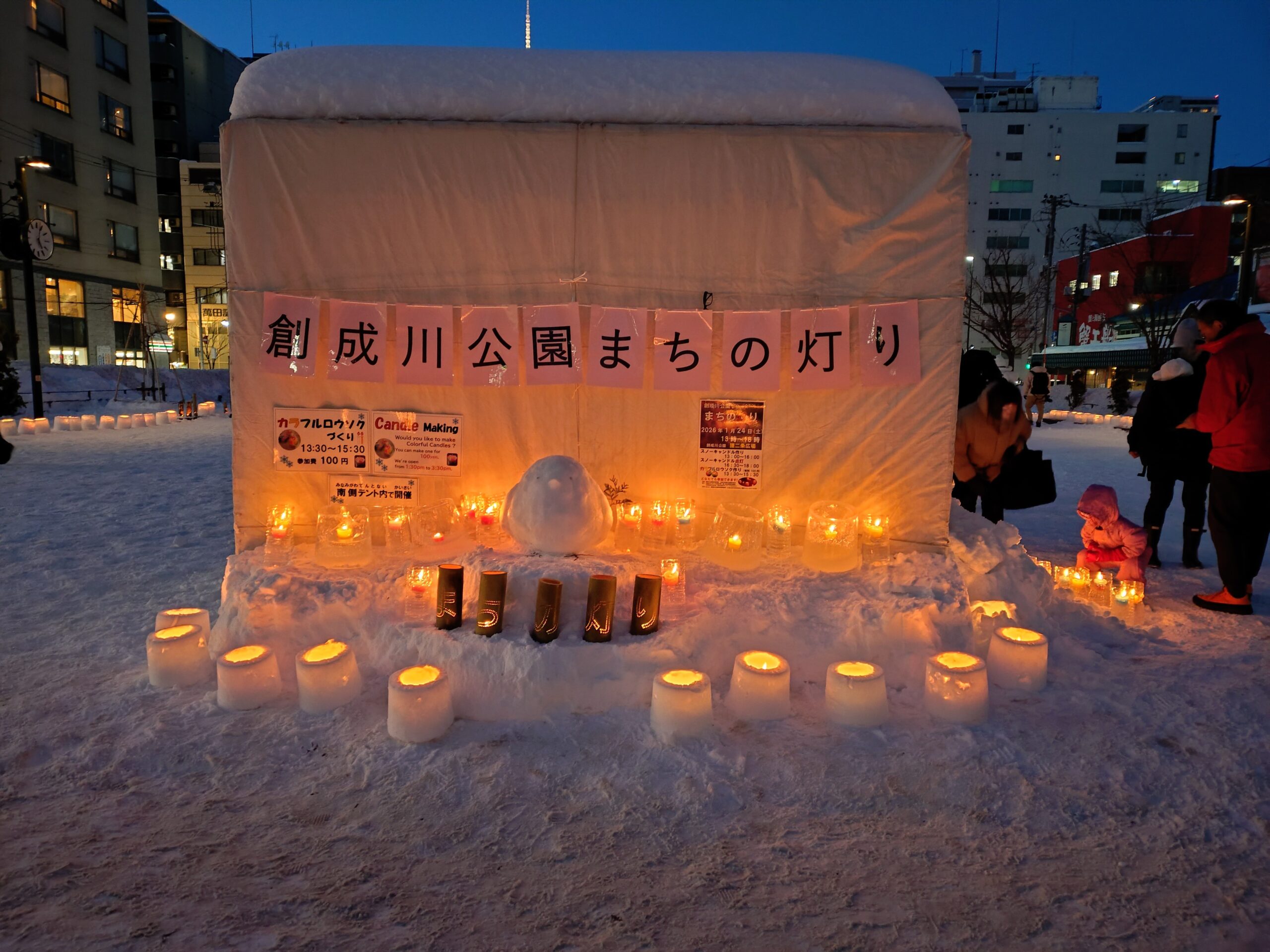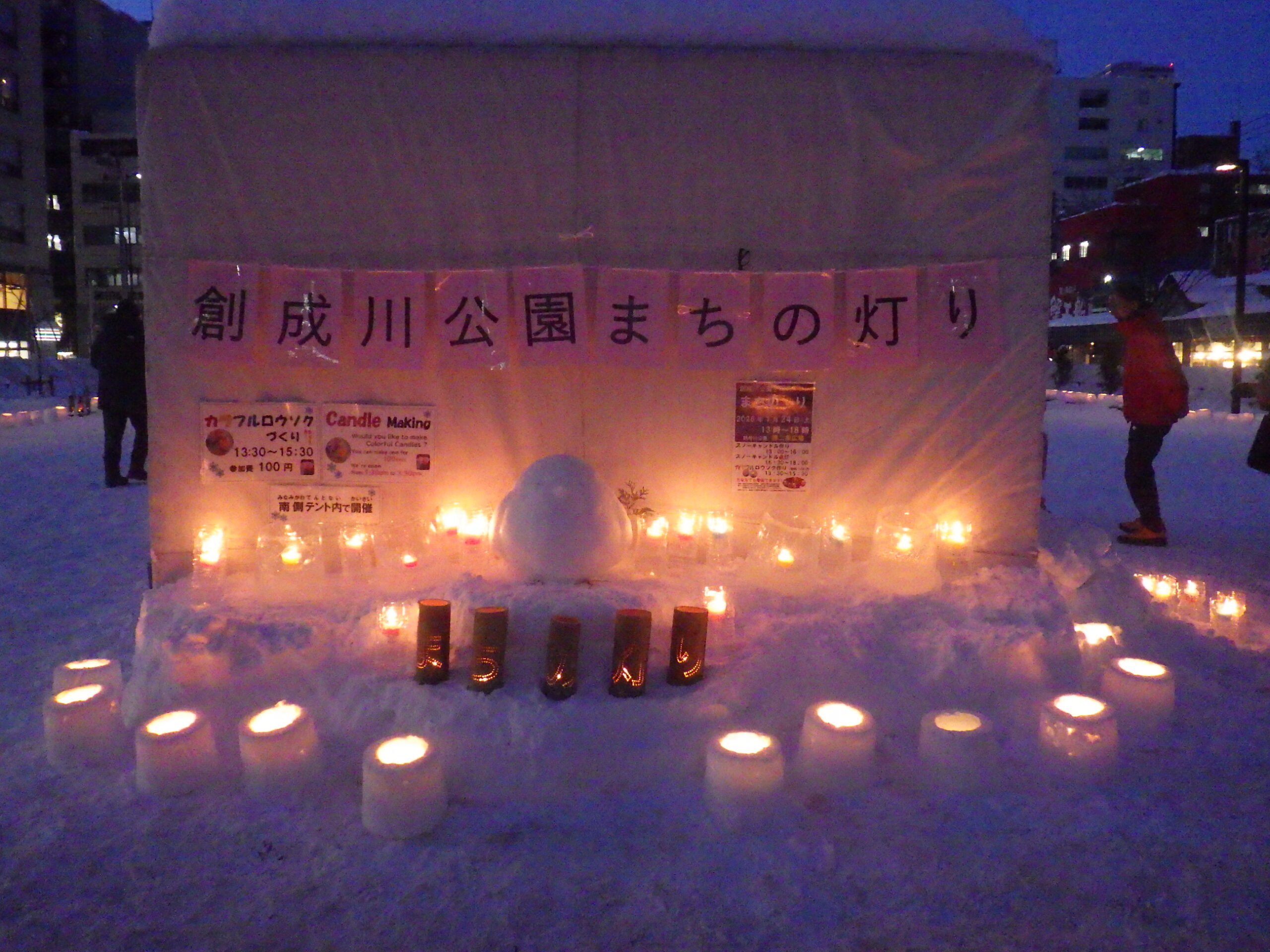 1月24日土曜日、「創成川公園まちの灯り」スノーキャンドル作りと点灯を開催しました。