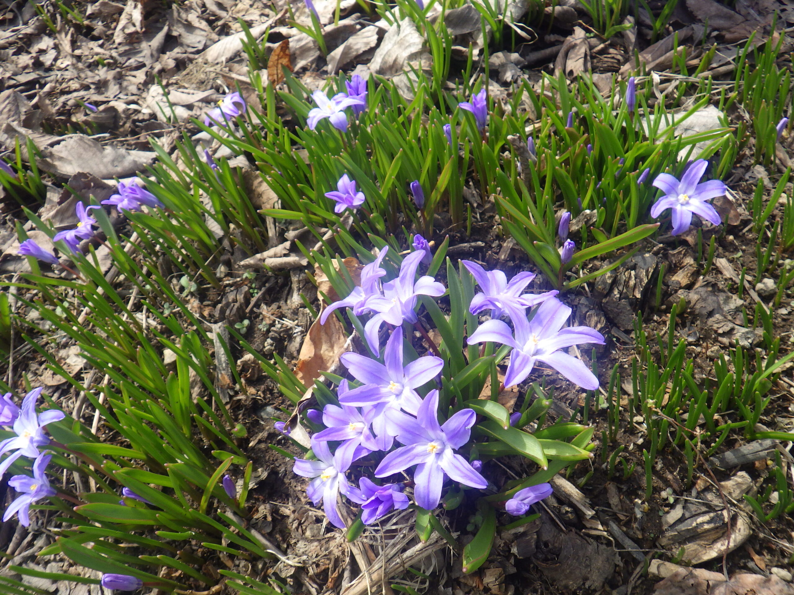 チオノドクサは、早春に星形の可愛らしい花を咲かせる球根類で、もともと芝生に植えこまれているものです。