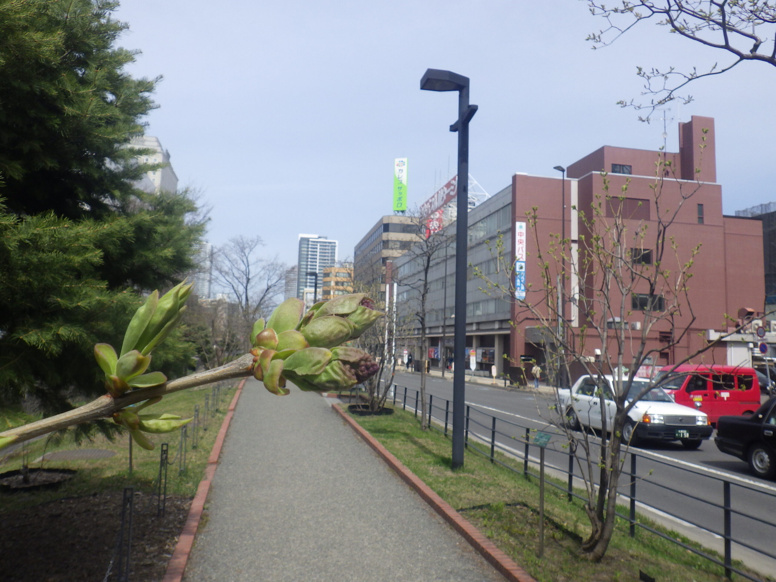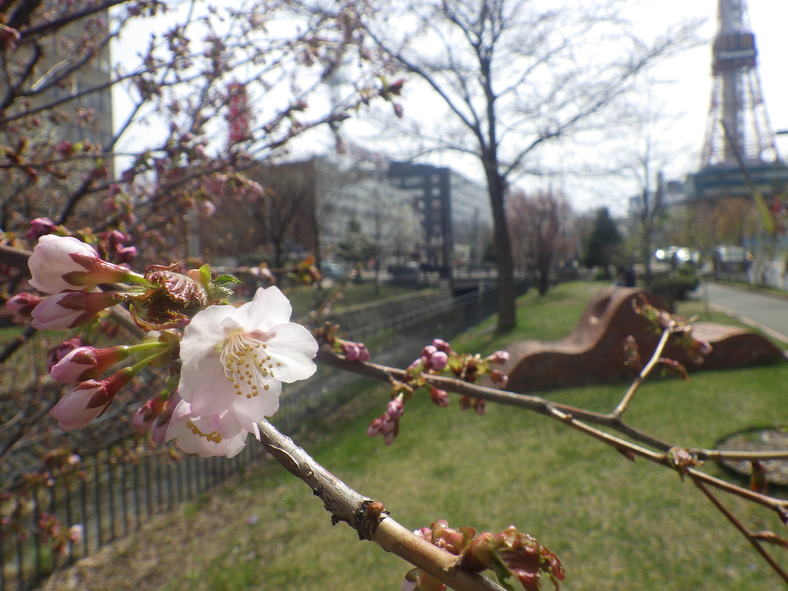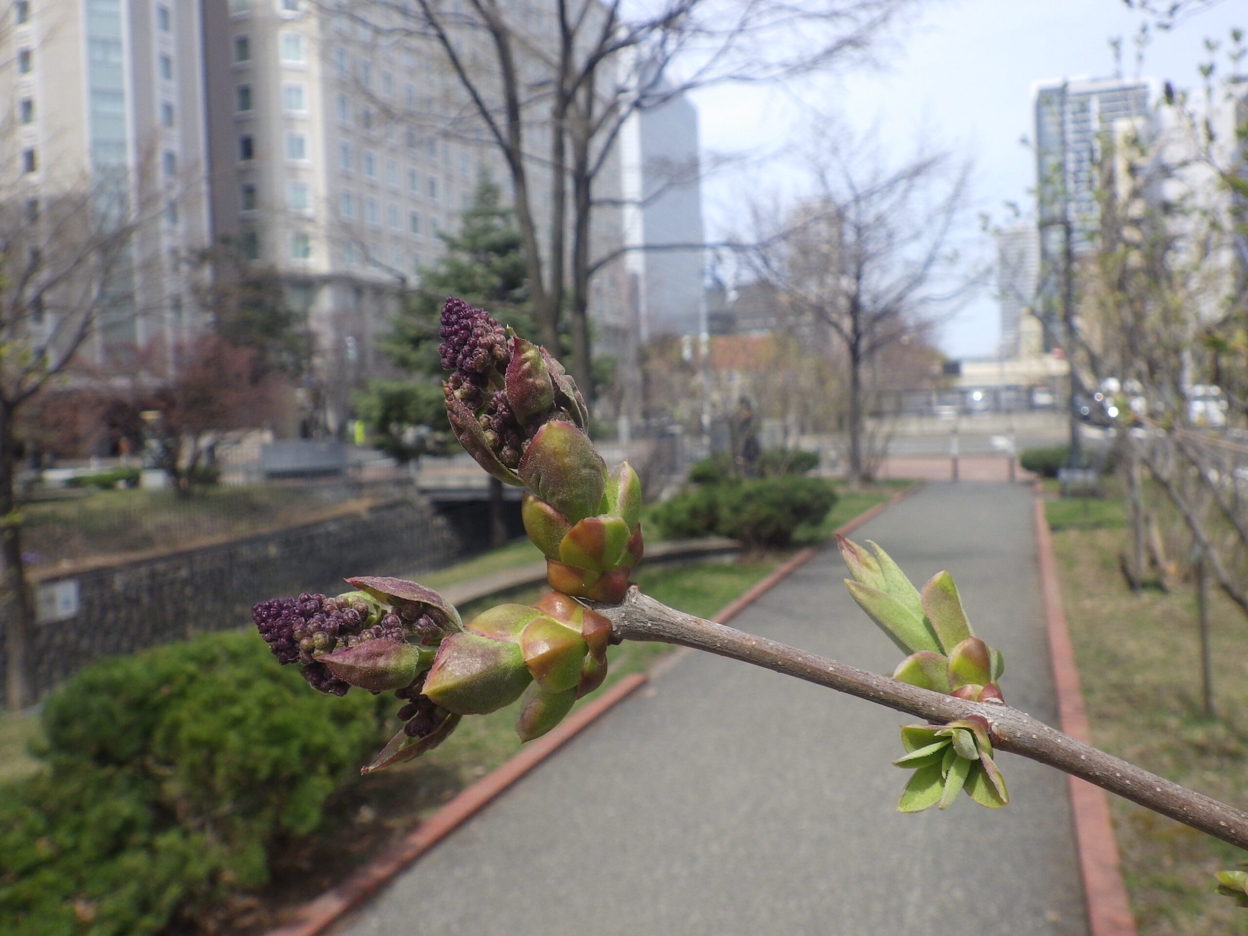 4月17日金曜日の午前中、公園内でチシマザクラが咲いていました。開花宣言です! 南2条西側のチシマザクラ 開花宣言の5輪以上はしっかり咲いています。 南4条東側のチシマザクラも開花です。 北2条西側でも 北1条西側のエゾヤマザクラも何輪か咲いていました。 ライラックのつぼみも色づいてどんどん膨らんでいます。 早咲きのアセシッピー 早咲きのエスタースティリーです。 ライラックの開花宣言はいつになるでしょうか。