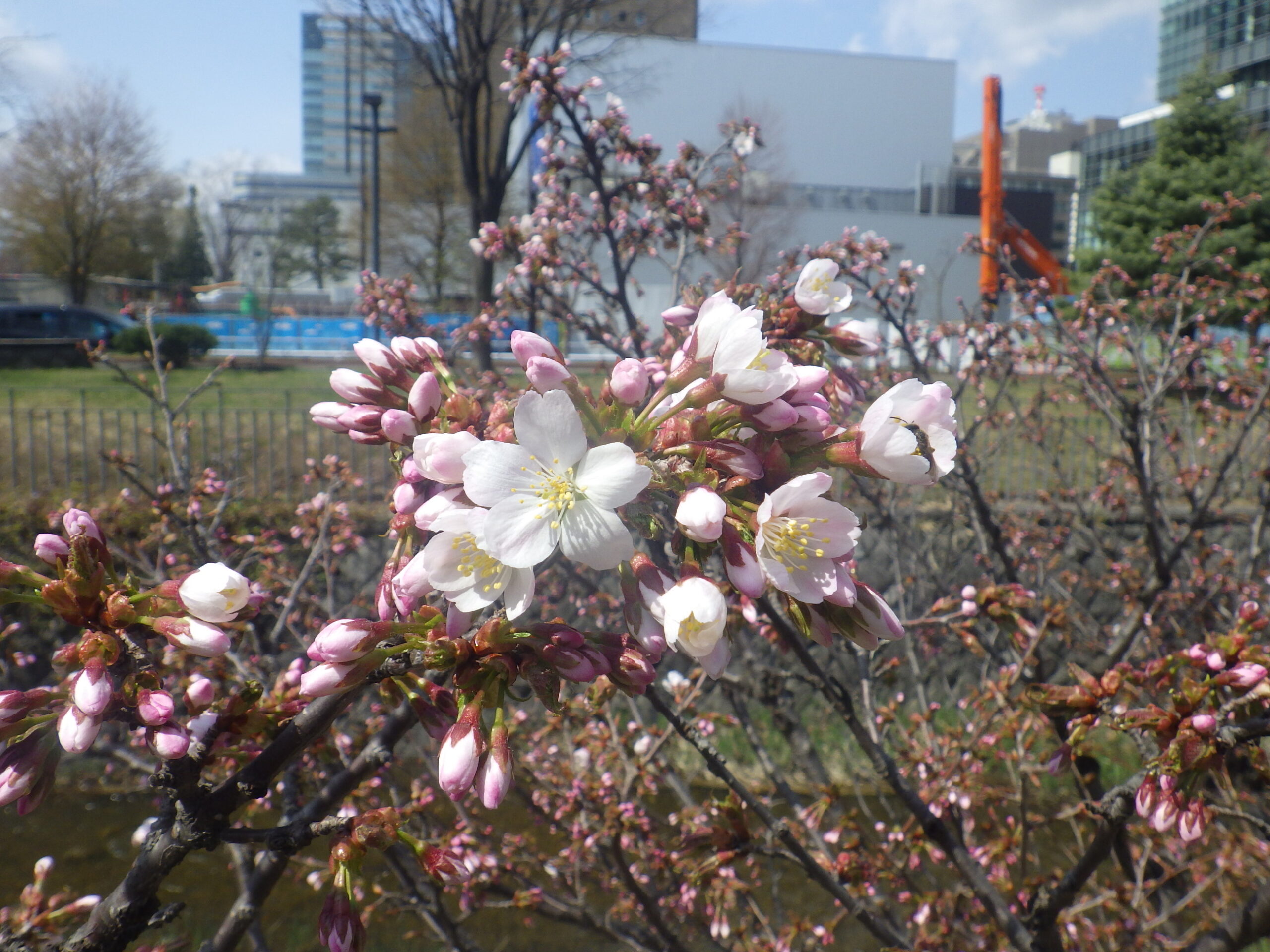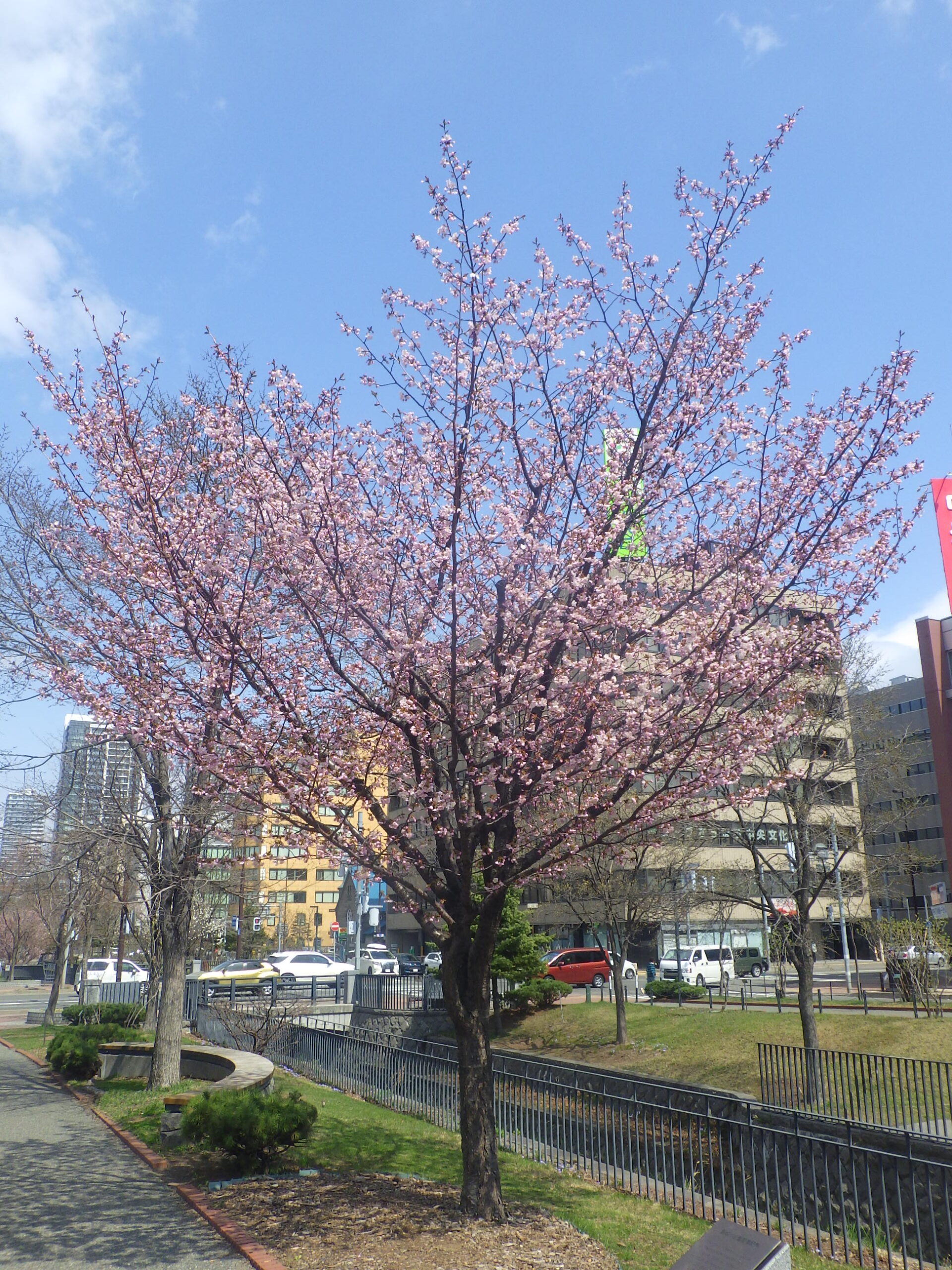 4月18日土曜日、北1条西側のエゾヤマザクラ、たくさんの花が咲いていました。 公園内の他のエゾヤマザクラはまだつぼみのものが多いですが、この1本はしっかりと咲いていました。 チシマザクラも次々に花を咲かせています。 公園内のチシマザクラは、南2条西側が一番の見どころです。 南4条のチシマザクラ 北1条東側のチシマザクラも咲いていました。 早咲きライラックのエスタースティリーのつぼみも昨日より大きくなった気がします。