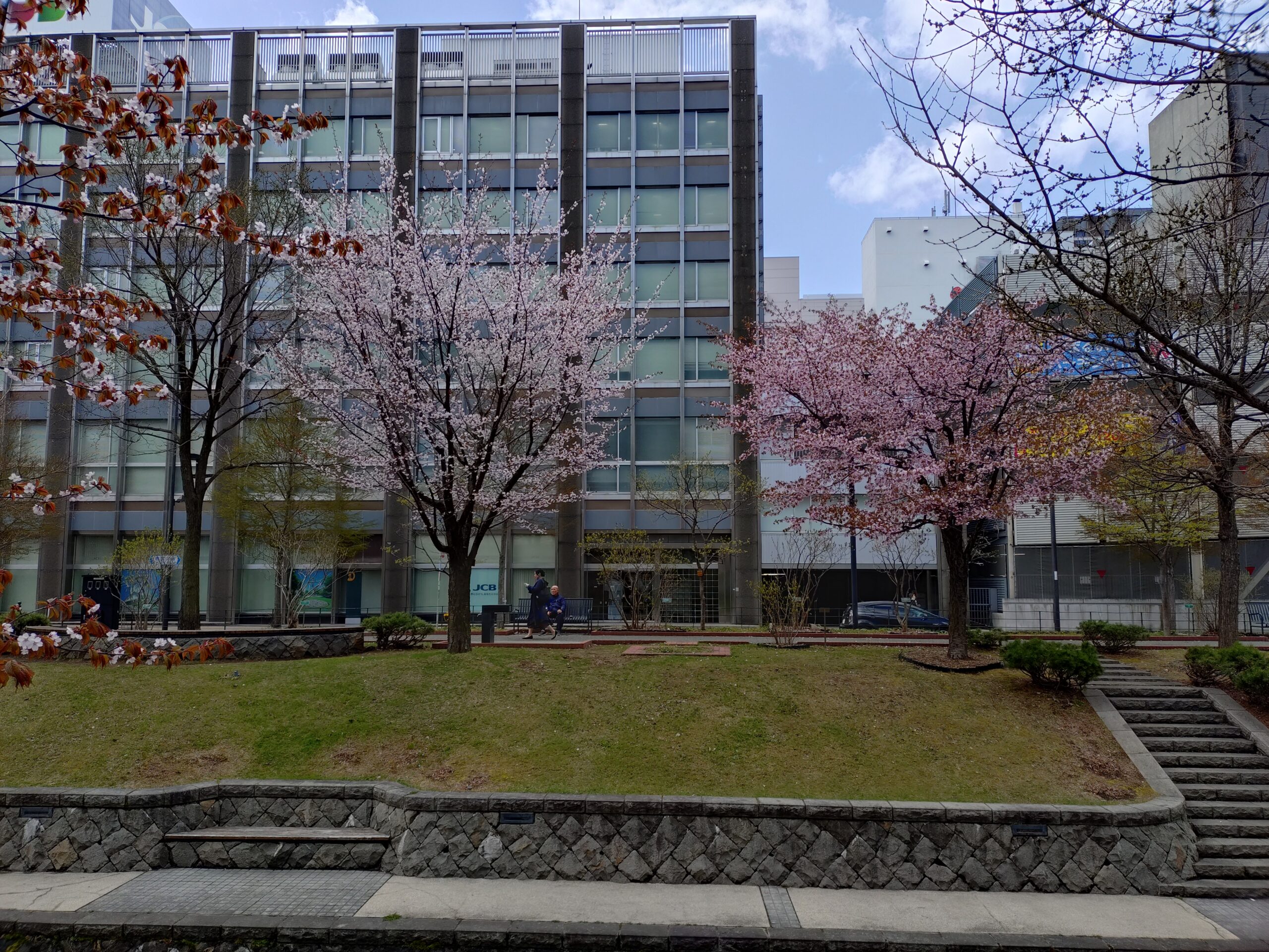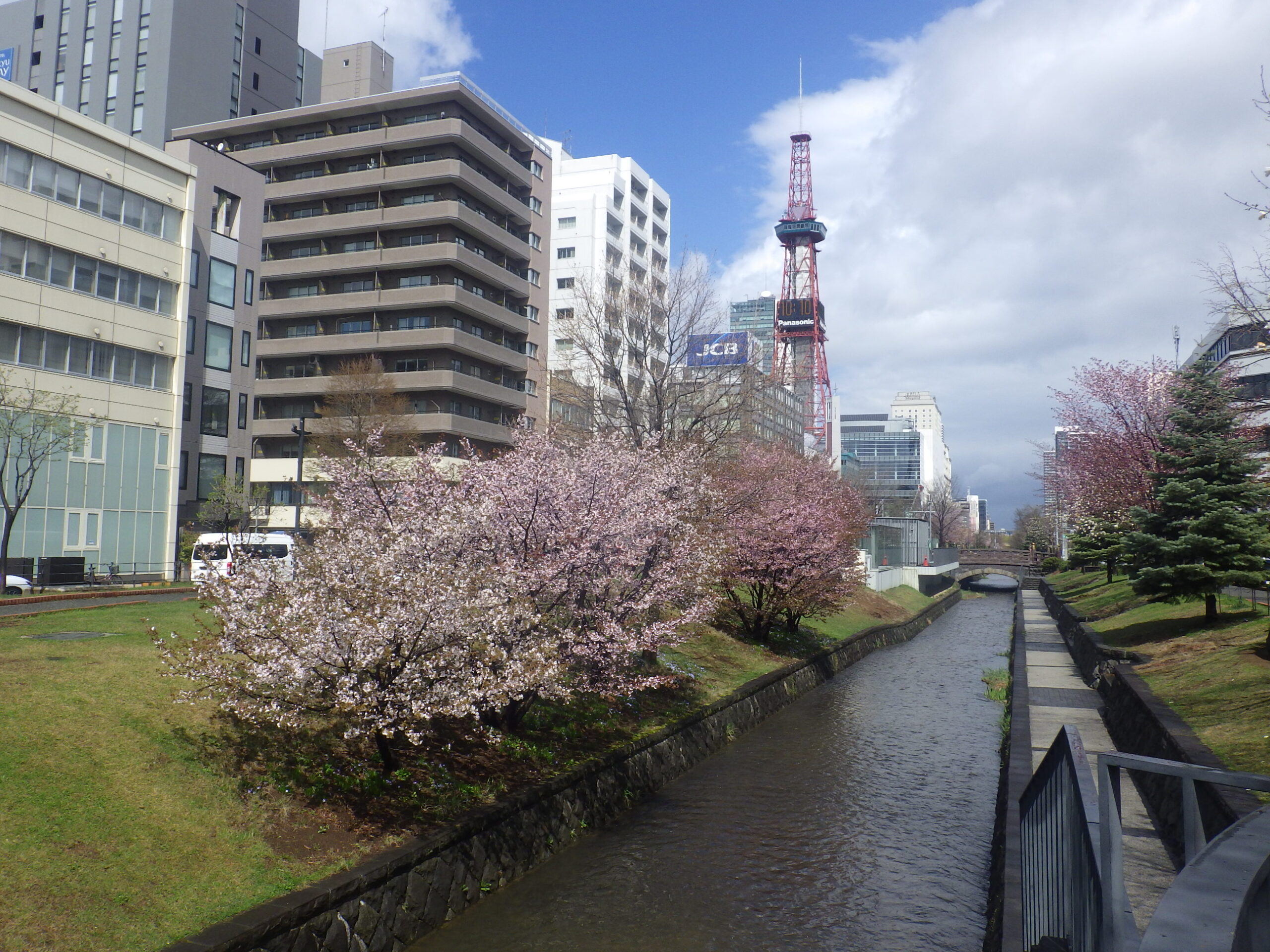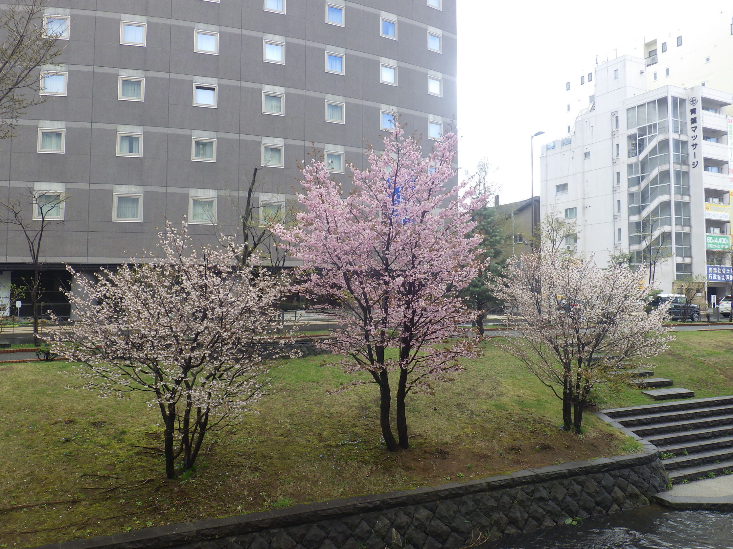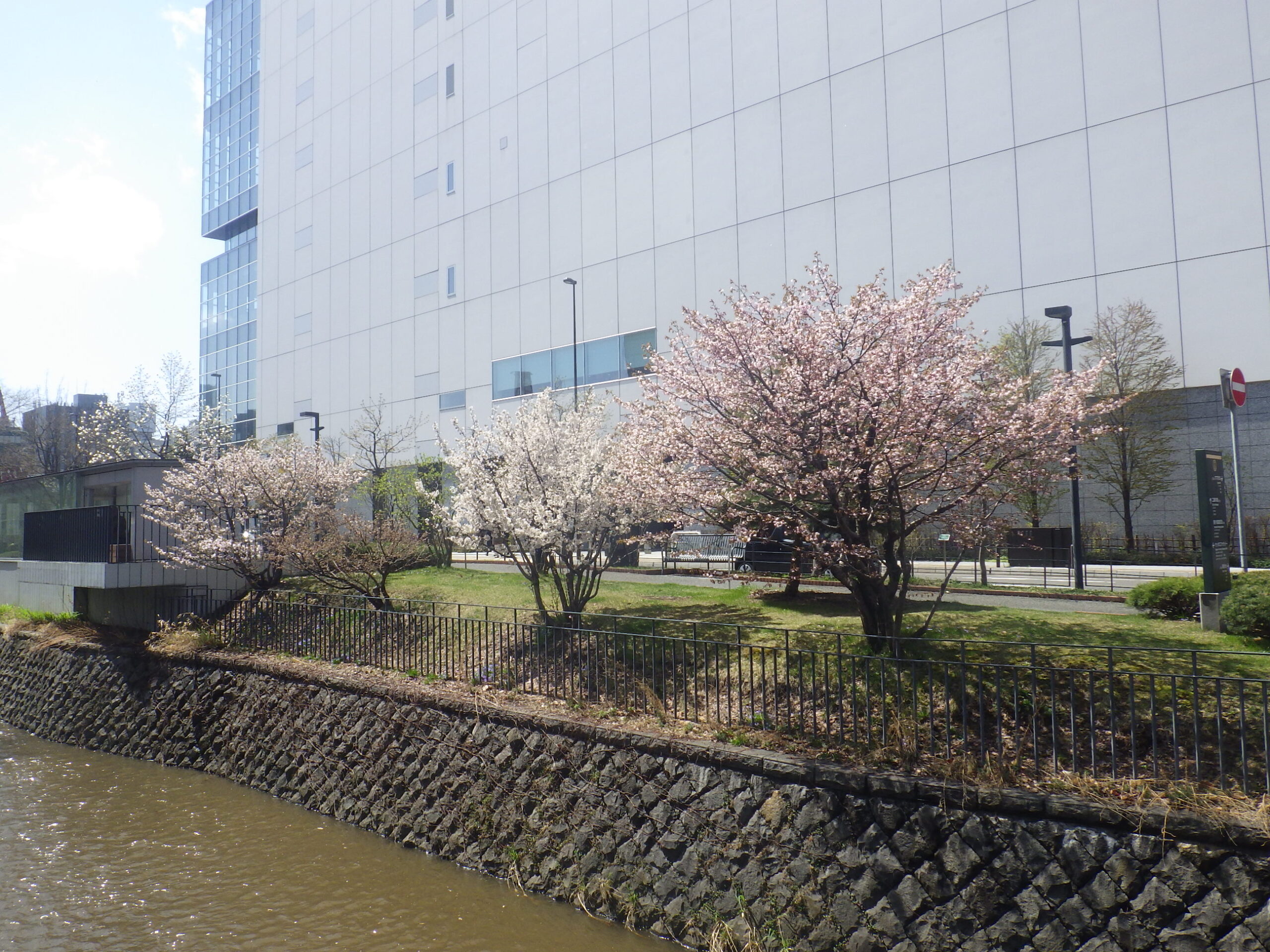 4月21日火曜日、朝まで雨が降っていましたが、10時過ぎにはあがって青空が見えました。 公園内の桜が見頃です。 北1条では創成川をはさんでチシマザクラとエゾヤマザクラが楽しめます。 北1条西側のエゾヤマザクラ 南1条西側のエゾヤマザクラ 南4条西側のチシマザクラ 南2条西側のチシマザクラ 北2条西側のチシマザクラ 早咲きライラックのアセシッピーのつぼみです。もう少しですね!