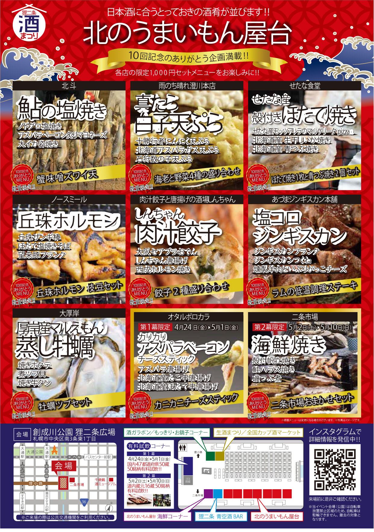 4月24日金曜日から、創成川公園狸二条広場で「狸二条酒まつり」が始まります。