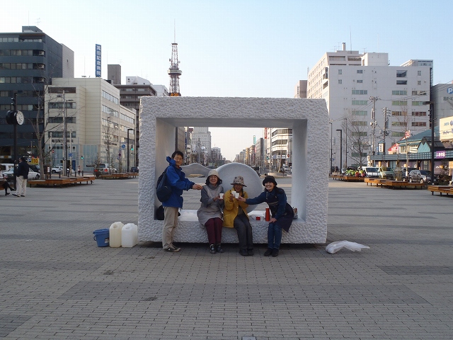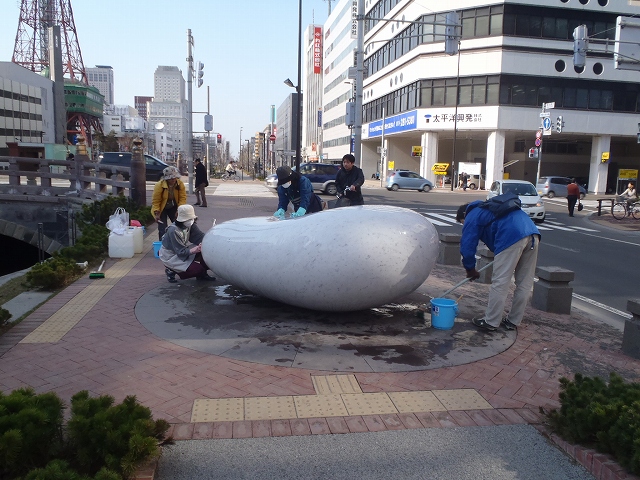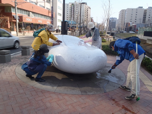 お天気の良い土曜日の午後、昨年から引き続き安田侃氏の彫刻作品の清掃ボランティアのみなさんが活動を始めました。