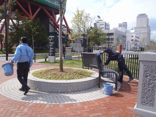 昨年に引き続き、5/7(月)から平日の午後、真ん中広場のゴミ拾いとベンチの清掃を、さっぽろテレビ塔の皆さんが行ってくれることになりました。
