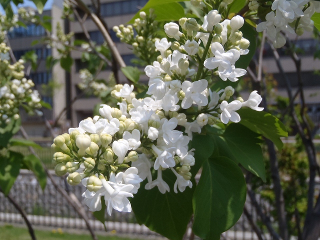 創成川公園のライラックたちは、今日のお天気を喜ぶように、元気に少しだけ咲き始めています。