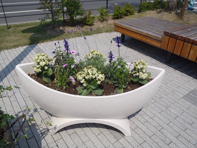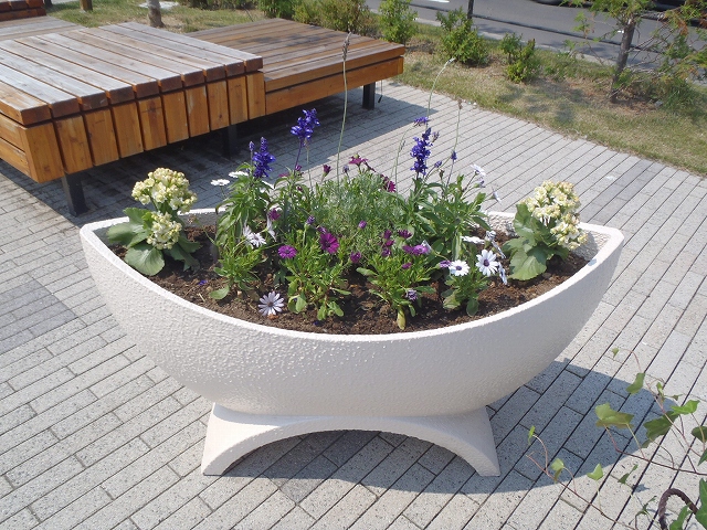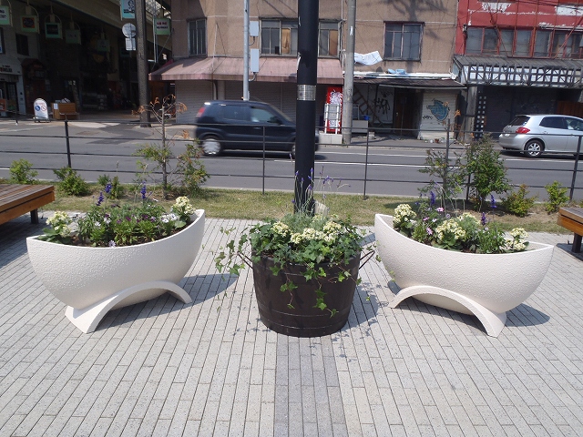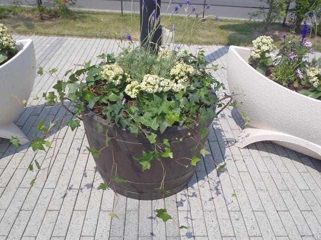 6/29の金曜日、狸二条広場の時計の下に「コンテナ花壇」が設置されました。 これは、公園に隣接する吉田学園さんの学生さんたちが「緑の基金」として 募金して集めてくれたお金で寄付されたもの。 落ち着いた色合いの、素敵なコンテナです。 広場にいらしたら、どうぞ、ご覧ください。 <植えられているお花> ラベンダー ファリナセア ブルー カランコエ クインローズ パリ オステオスペアマム スナドラ