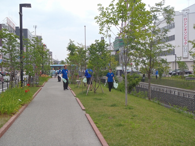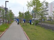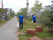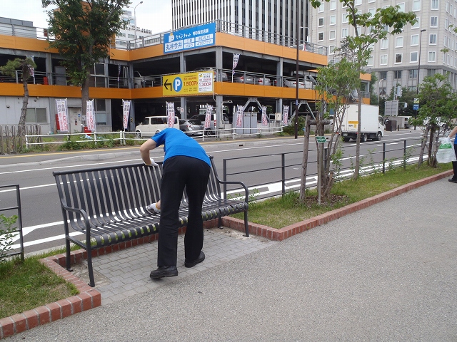 7/24(火)の午後は、全日空ホテルの皆さんが北1‐2条の北側2ブロックの清掃・ベンチ拭きの活動を行ってくれました。 今回で2回目の活動です。 おそろいの青のTシャツで、暑い中、頑張ってくれていました。