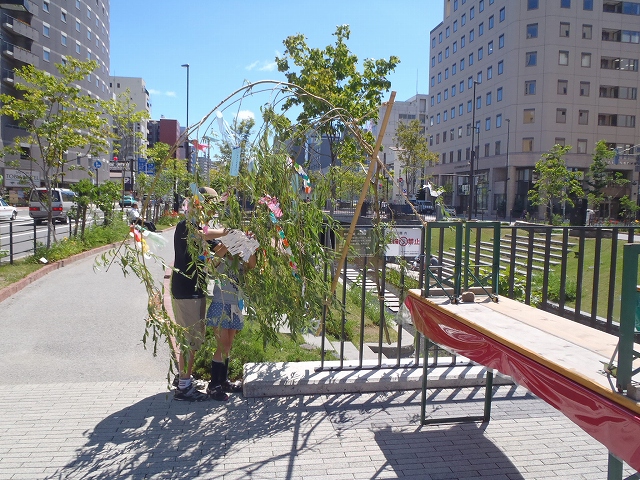 狸二条広場の南側で「創成川 七夕まつり」を開催しました。