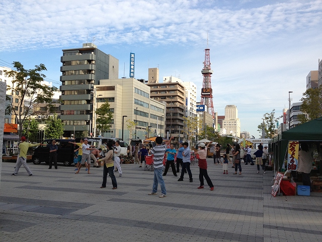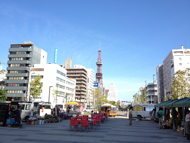 札幌のど真ん中で朝市を開催します! さっぽろファーマーズマーケット ・・・・・・・・・・・・・・・・・・・・・・・・・・・・・・・・・・・・・・・・・・・・・・・・・・・・・・・・・・・・・・・・・・・・・・・・・・・・・・・・・・ 9/8(土)に、第1回目が開催されました。 まずは、朝のラジオ体操 40名以上の方が参加してのラジオ体操となりました。 さてお店も開店して・・・・・ 色々なお店が並びました。 次の土曜日、9/15も開催します! お楽しみに!!