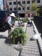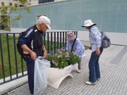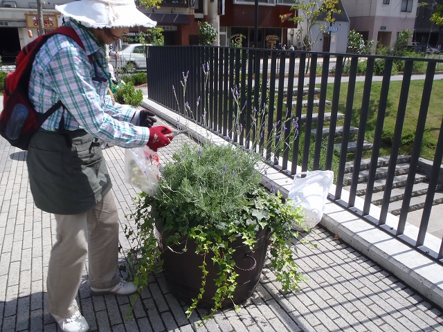 花壇ボランティアの皆さんが、終わった花摘みと枯れた葉取りなどの