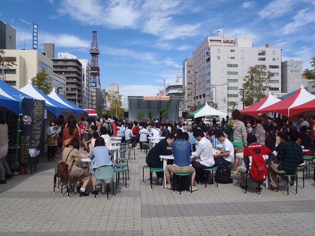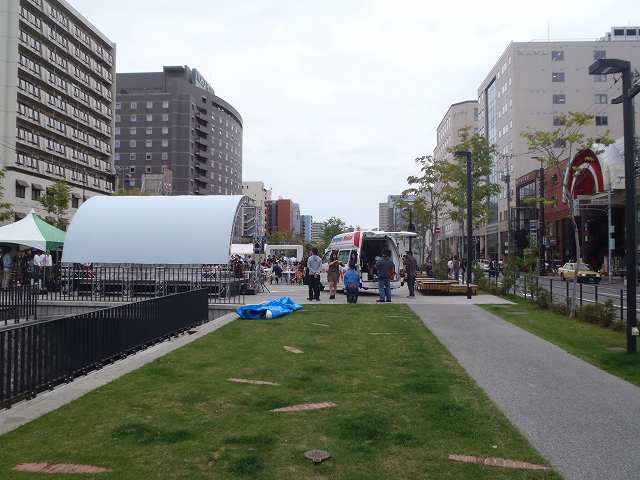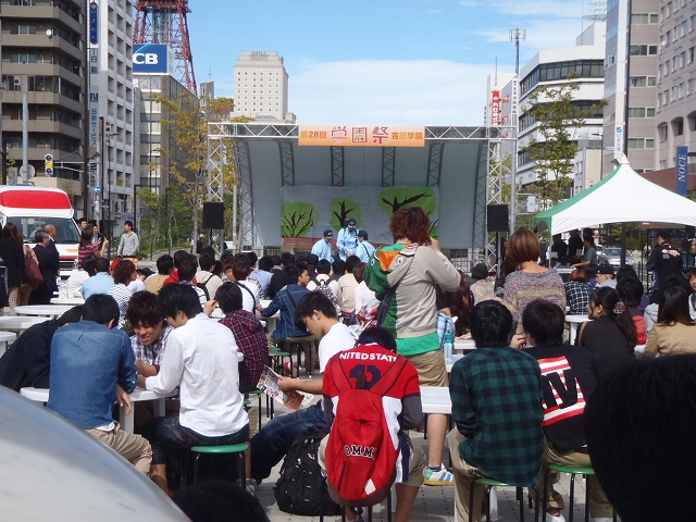 公園の向かいにある専門学校の学園祭が広場で行われて、たくさんの学生さんで賑わいました。