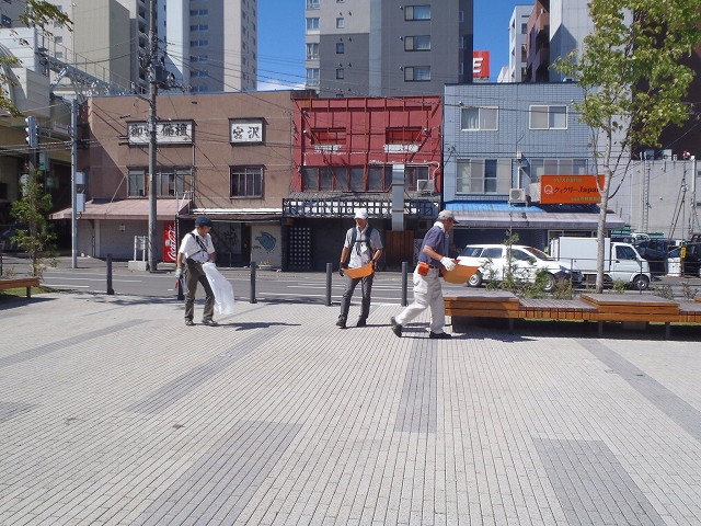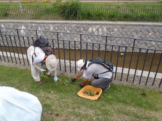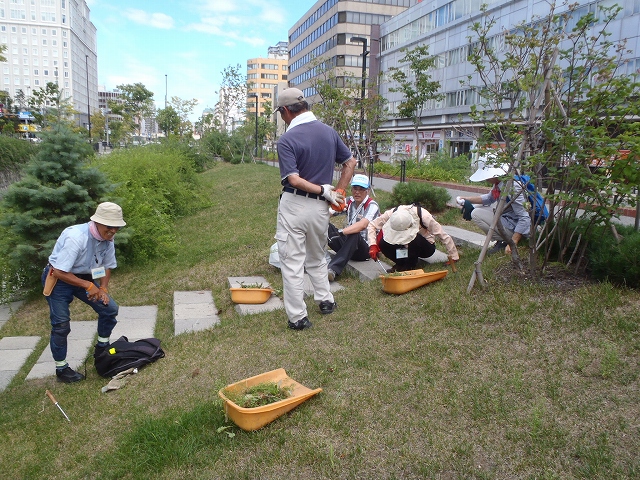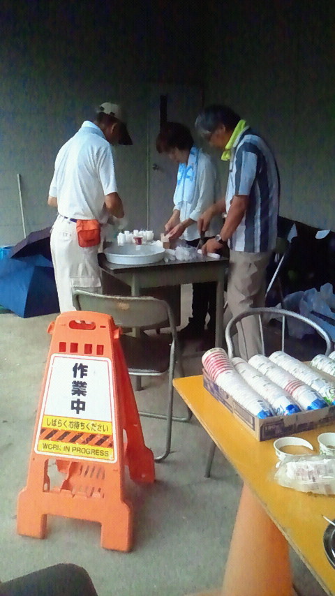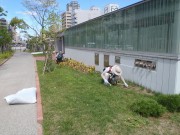 雨のため、急遽中島公園の管理事務所に場所を移して「朗属作りをしました。