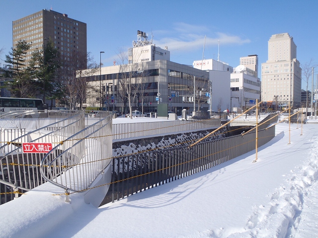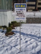 雪ですべってあぶない、そんな危険なところには、立入禁止の看板を付けています。