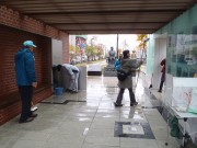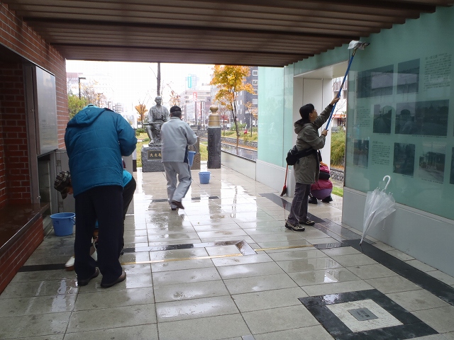 今日は、園内の清掃と休憩施設のガラス等の清掃。