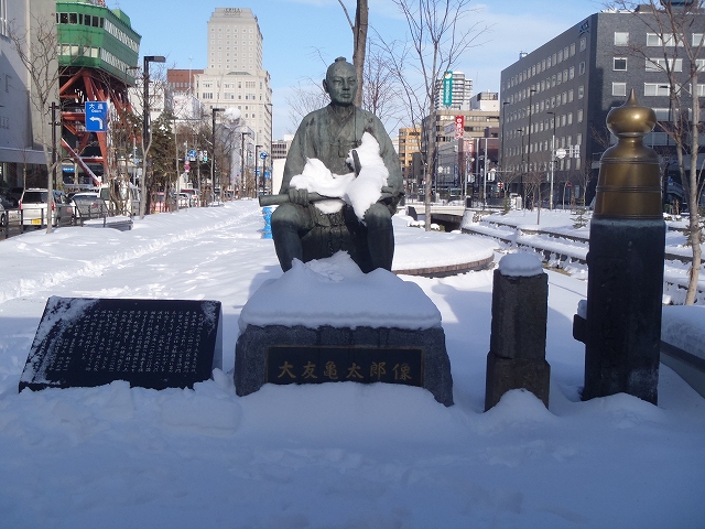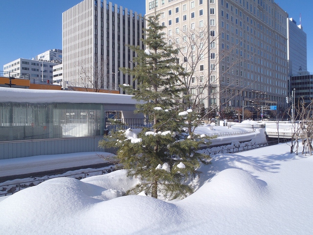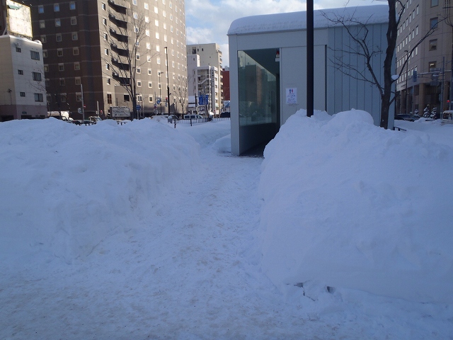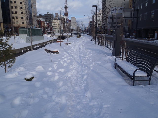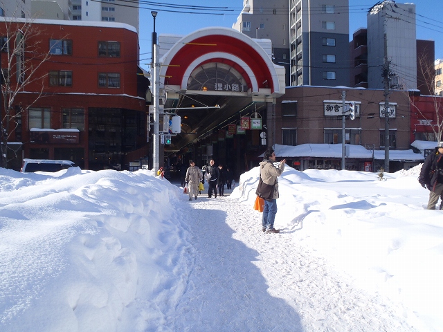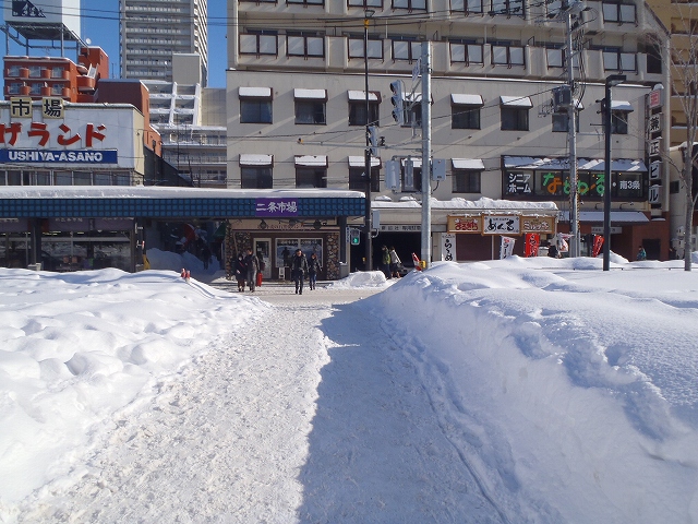 ●狸二条広場の狸小路と二条市場をつなぐ間は除雪されています。