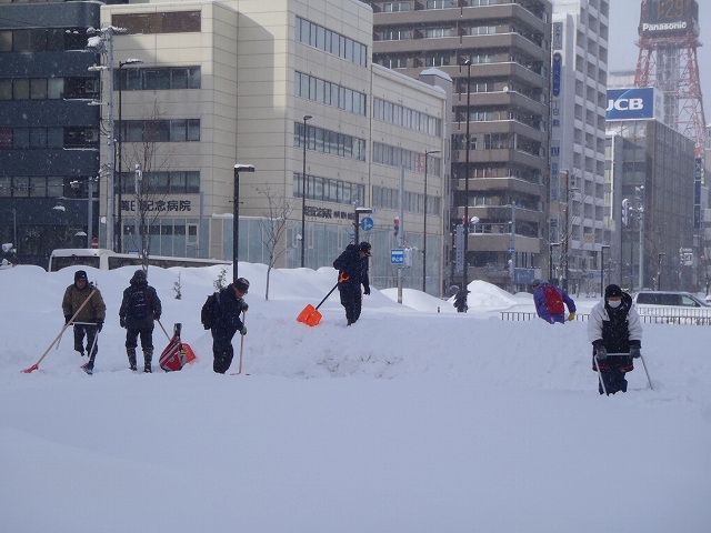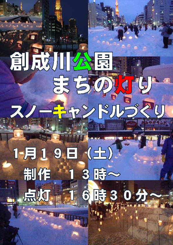 創成川公園 まちの灯り ~スノーキャンドルづくり 明日開催です。 スノーキャンドルづくりは、13時から スノーキャンドル点灯は、16時30分から を予定しています。 無料で、どなたでも参加できますので、皆さん是非、いらして下さいませ!! 本日、13時から、創成川公園お助け隊のメンバーが、準備作業をしました。 雪の降る中の作業でしたが、みんな、頑張ってくれました。 明日、お天気に恵まれることを願って!!