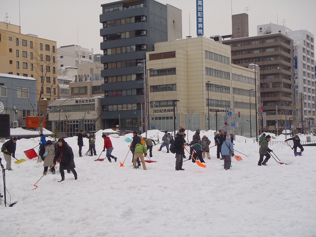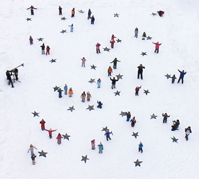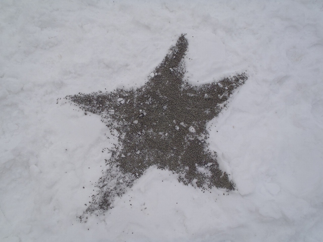 みんなで除雪し、踏み固めて、星型に砂を入れて、完成!