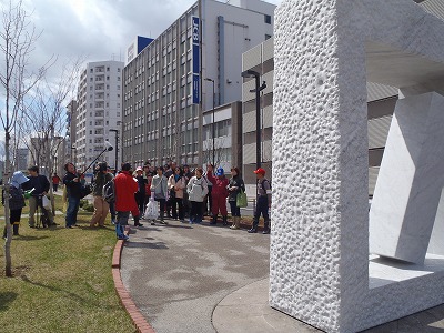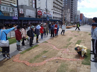 前日から明け方までの雨もようやく上がり、青空も見られる中、まずは創成川公園のご紹介をしました。
