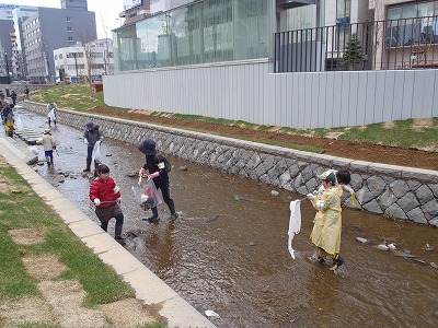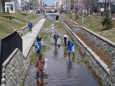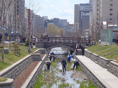 4月24日の日曜日 「創成川のお掃除」を30名ほどの市民ボランティアさんと、地域の皆さん、創成川公園のスタッフで行いました。