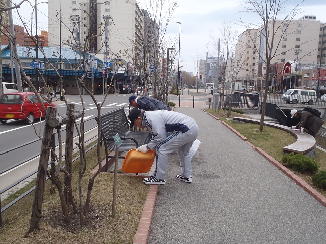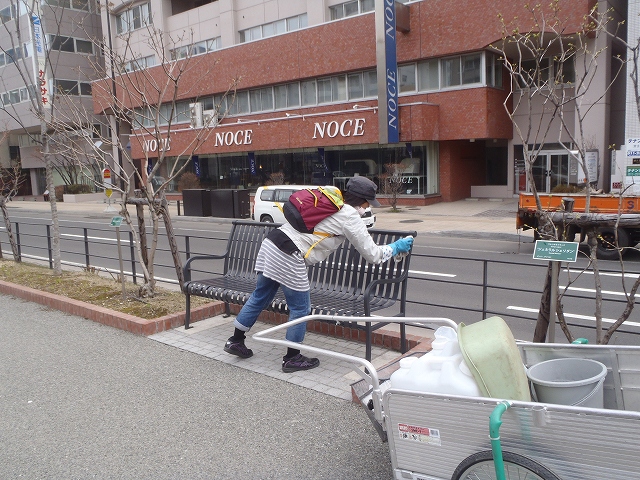 4月24日水曜日、お助け隊、今年度2回目の活動は、春のベンチ清掃。