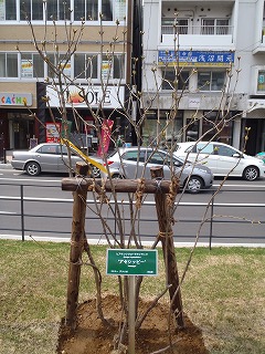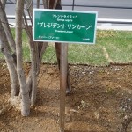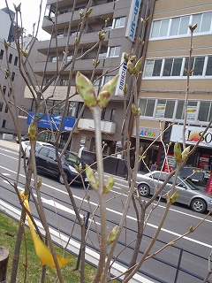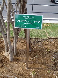 創成川公園には、たくさんの種類の「ライラック」が植えられています。 それぞれのライラックには、名札がつけられています。 今はまだ、花も芽が膨らみかけている状態ですが、どんな花が咲くのか楽しみです。 ライラックの花は5月の下旬頃の予定でしょうか。