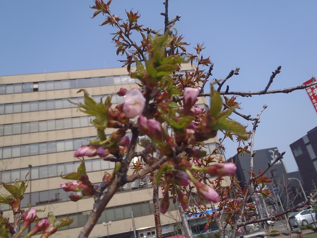 北2条ブロック西側のチシマザクラが一輪花開きかけています。