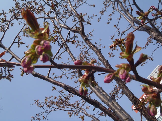 エゾヤマザクラもつぼみがピンクにふくらんで・・・