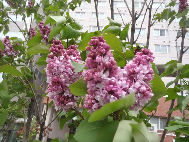創成川公園のライラックの様子です。 アセシッピー イーディスガブェル エスタ-スティリー ジェネラルシュリダン チャーム フランクフルターフリューリンク プレジダングレビー プレジデントリンカーン マダムフローレントステップマン ミスエレンウイルモット ラムフォンホルステンシュタイン