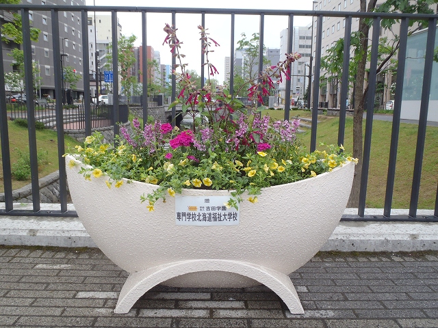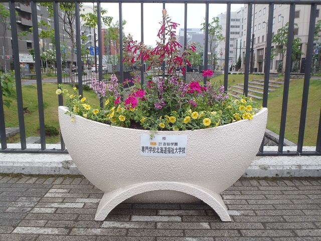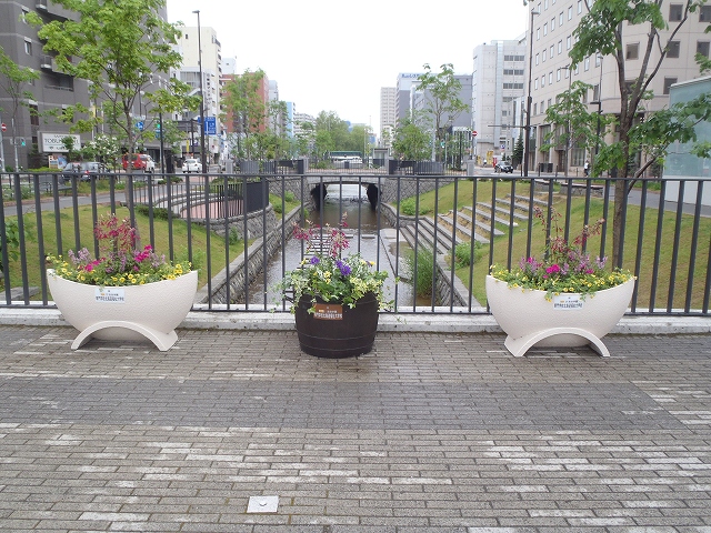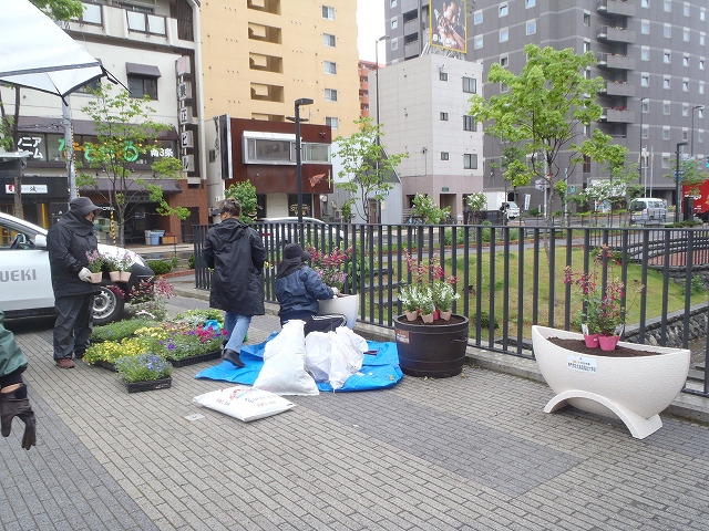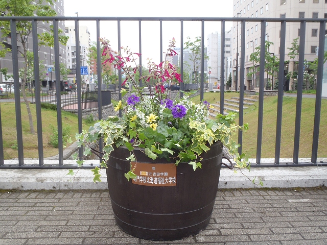 狸二条広場のコンテナ花壇が今年も登場しました。
