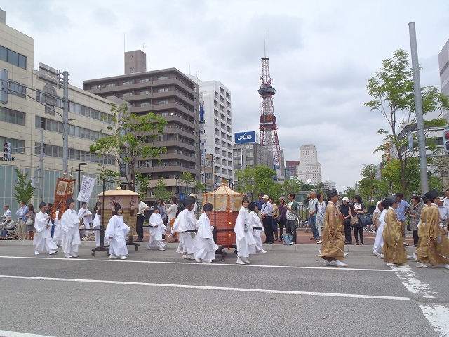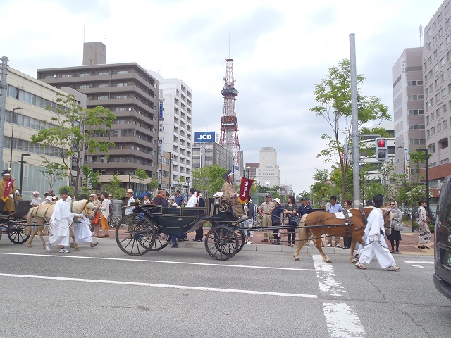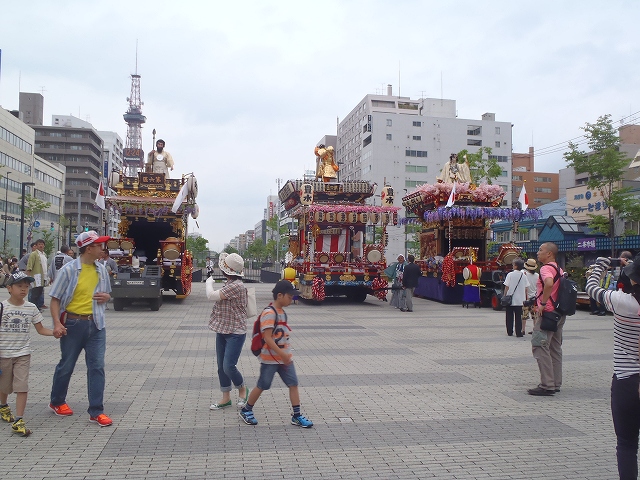 ◆6月15日(土) 「札幌まつり」の2日目 狸二条広場に、「第七東祭典区」の山車が入り、踊りの披露がありました。 ・・・ ◆6月16日(日) 「札幌まつり」の3日目 神輿渡御の行列が、南2条通り-南3条通りを通りました。 ・・・ 続いて各祭典区の山車がやってきました。 ・・・ 「本府祭典区」「西創成祭典区」「豊水祭典区」の山車がお昼休憩で広場に入りました。