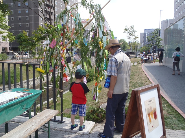 8/7水曜日、狸二条広場にて、小樽ビールさんのご協力をいただいて、会場をお借りし、「創成川七夕まつり」を開催しました。
