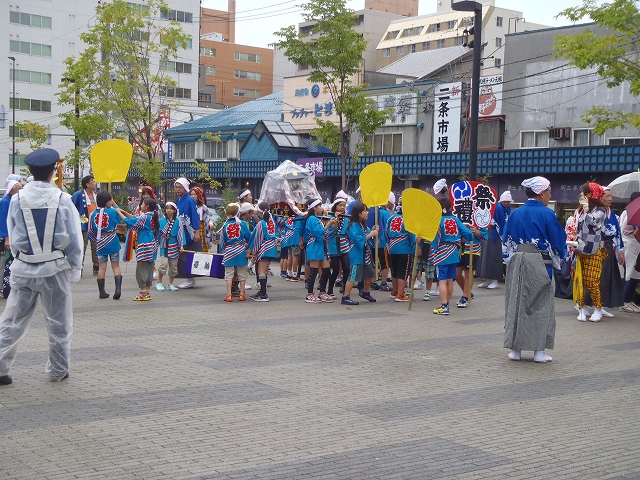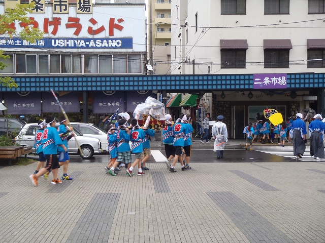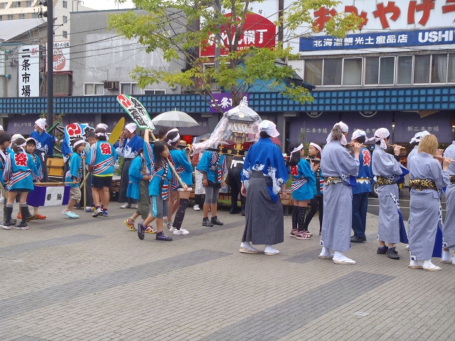9月15日の日曜日、雨の中、頓宮祭の第7祭典区の子ども御輿が、二条市場や創成川の東の町を練り歩きました。