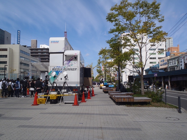 9月29日の日曜日、朝からお天気も恵まれて、公園に隣接して建つ吉田学園さんの学園祭が狸二条広場で開催されました。 まずは、開会式が行われ、たくさんの学生さんで賑わいました。 その後、他の会場の様子も写す大きなスクリーンが用意されて、青空の下で、みんな学園祭を楽しんでいました。