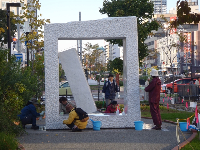 10/19土曜日の午後、安田侃さんの彫刻清掃が行われました。
