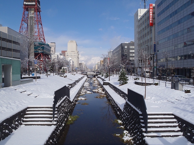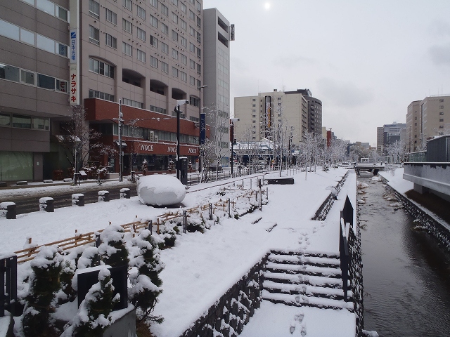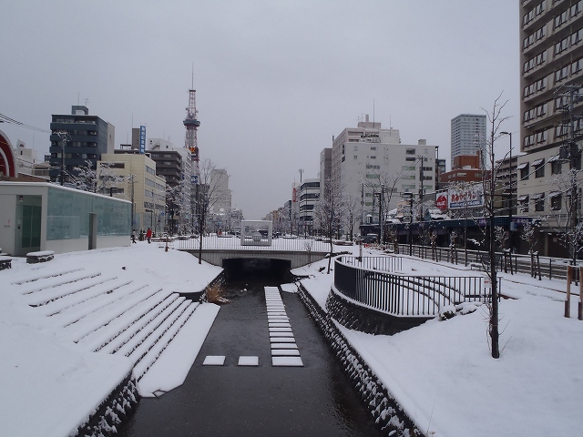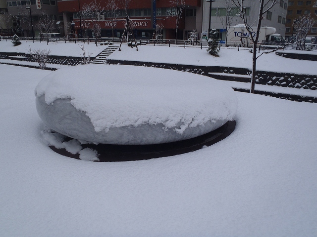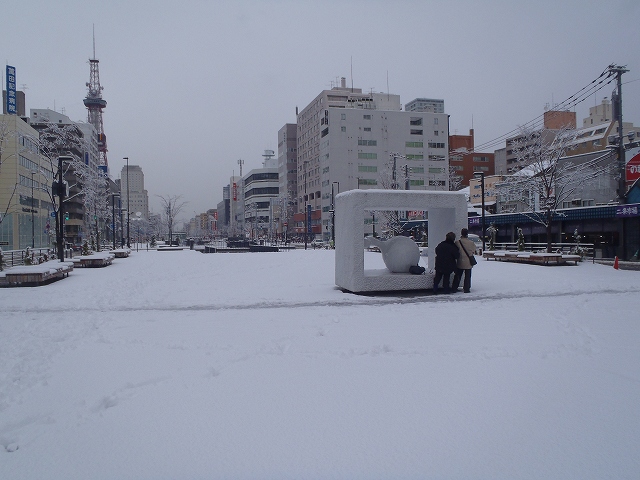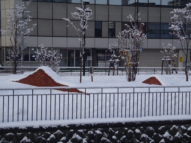 札幌にも雪が降り積もり、公園も白一色に。