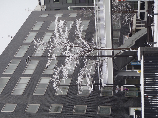 公園の樹木も、雪の花を咲かせました。