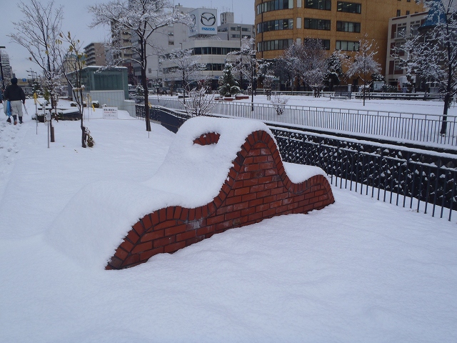 団塚さんのレンガの作品は真っ白い雪に良く映えます。