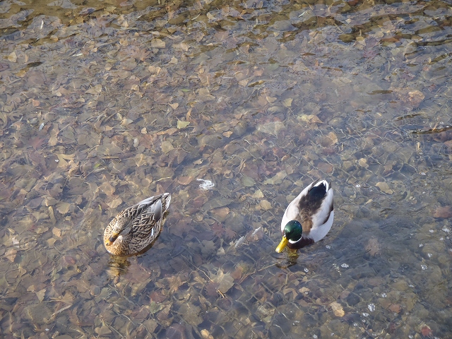 カモたちは、寒さの中でも元気です。