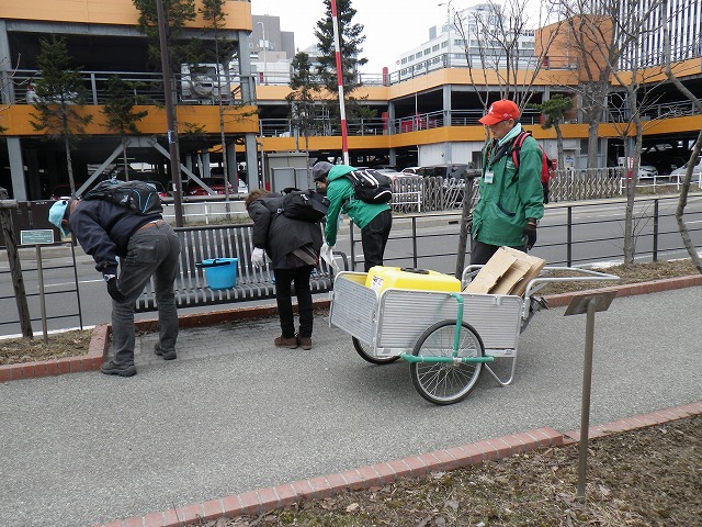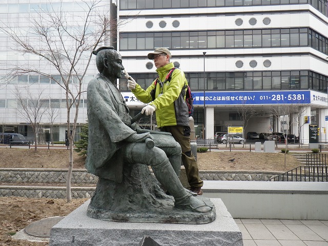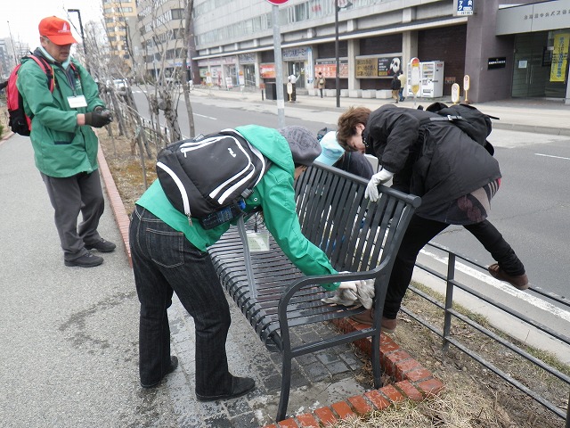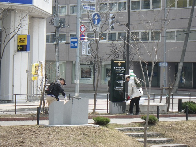 雪解け後のベンチふき、南1条開拓の広場煉瓦清掃、モニュメントなどの清掃などなど、春一番の大掃除に汗を流しました。
