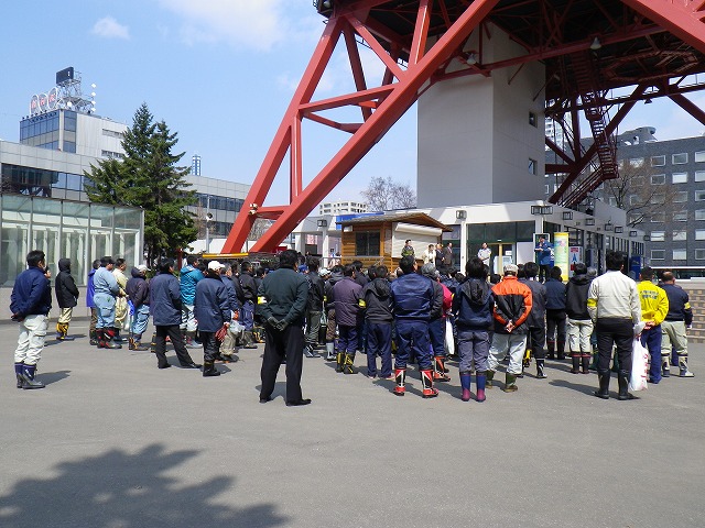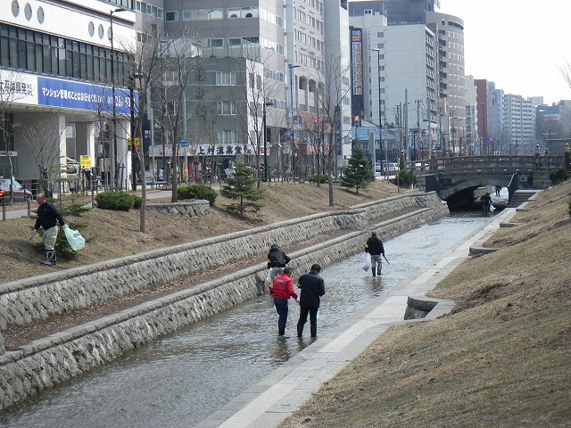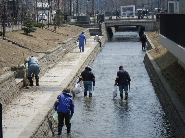 4月16日水曜日の午後、毎年創成川の清掃活動を行っている「弱電組合さん」が、公園区間の川と園内のゴミ拾いも行ってくれました。
