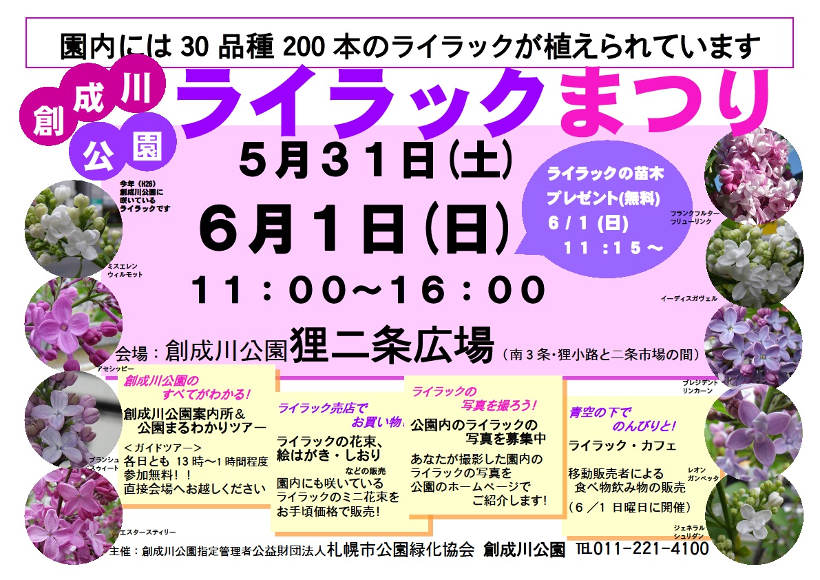 公園のこと、ライラックのこと、その他いろいろ、ご案内します!