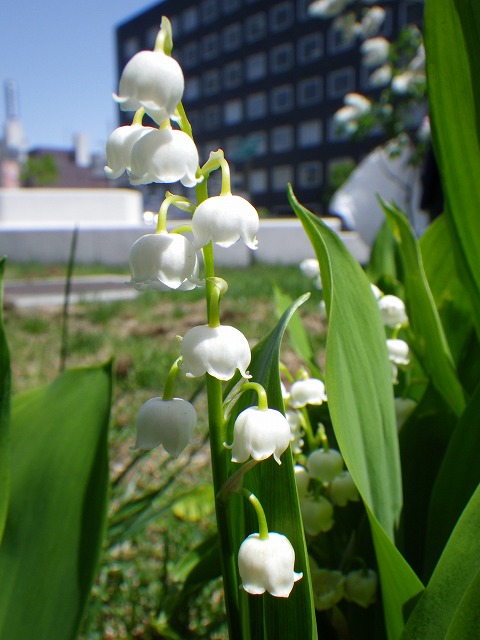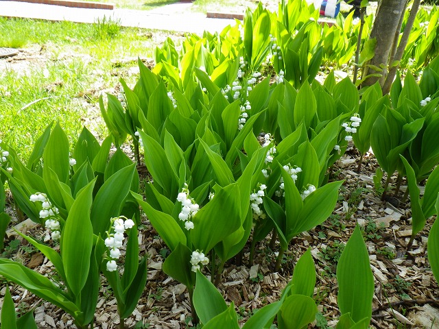 園内では、ライラックに併せて、「ドイツ・スズラン」「タイム・ロンギカウリス」というお花が、咲いています。 「ドイツスズランは、園内各ブロックの園路沿いの花壇に、 「タイム・ロンギカウリス」は、南1条や北1条の川縁の1段高くなったところに、 それぞれ植えられています。 ■ドイツスズラン ■タイム・ロンギカウリス