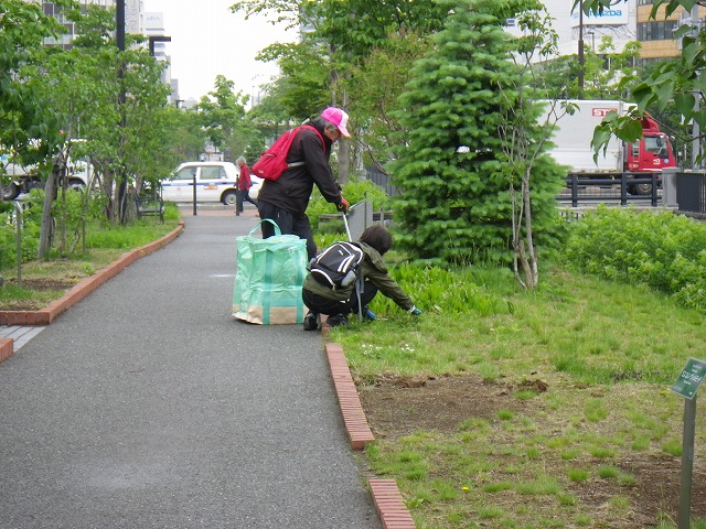 活動開始して1時間ほどすると、雨も上がり、元気に除草を開始しました。
