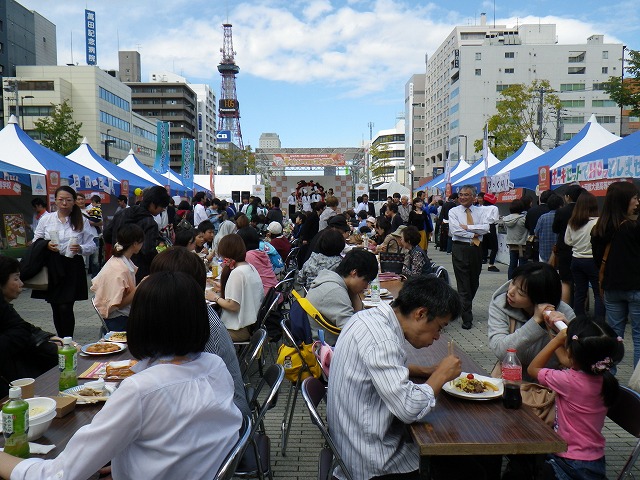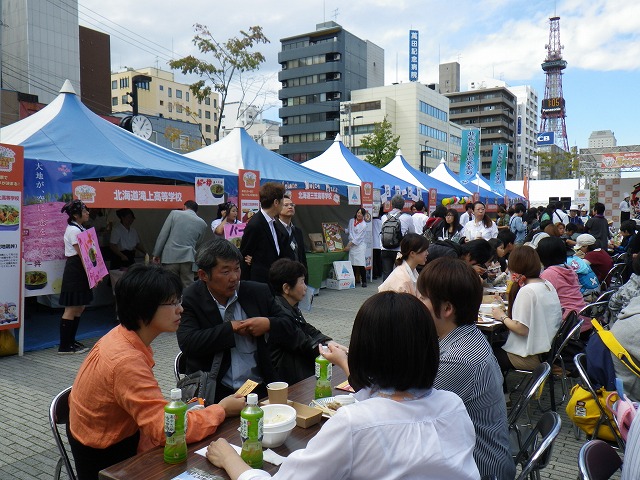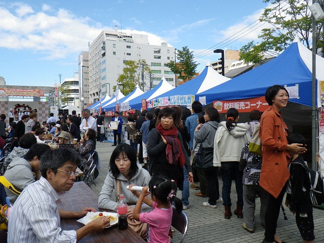 9月20日の土曜日、広場で「高校生チャレンジグルメ」のイベントが開催されました。 高校生のみなさんが、張り切って、お料理を振る舞っていました。 美味しいお料理が並んでいましたよ。 券売り場にも、たくさんの人が並んでいました。 かわいいゆるキャラも登場!