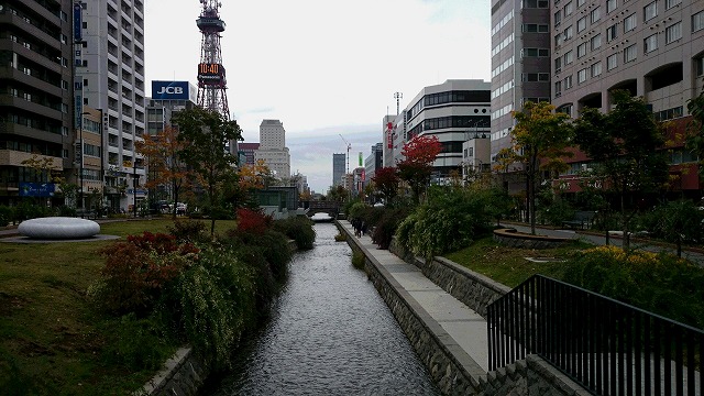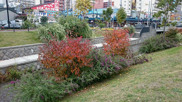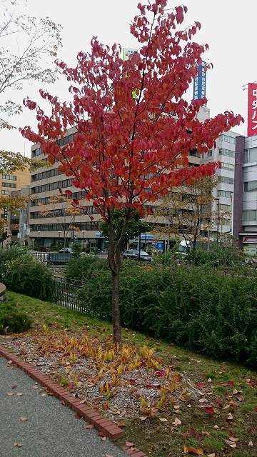 創成川公園の若い木たちも、紅葉が進んでいます。