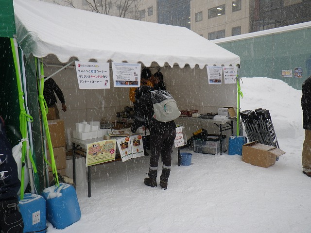 毎年一緒に開催していただいている「北海道点灯虫の会」の皆さんが準備をしてくれた「災害を考えるイベント」も、吹雪に襲われ残念でした。