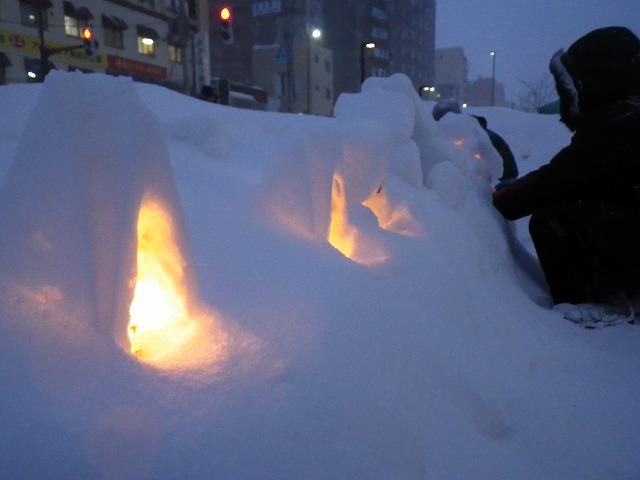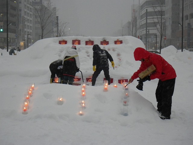 1月17日土曜日、阪神淡路大震災から20年目のこの日、札幌市内各所でスノーキャンドルのイベントが行われました。