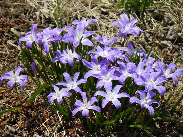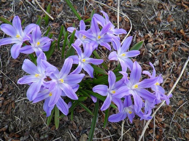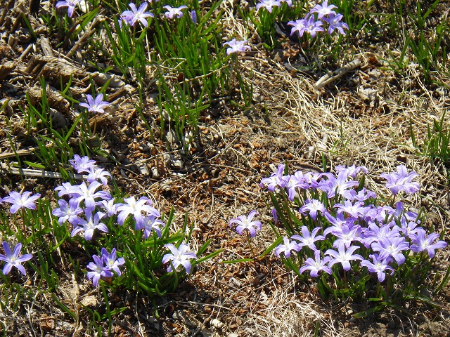 例年より早いですが、園内の芝生地の中に「チオノドクサ」が咲いています。 Chionodoxa ユリ(ヒアシンス)科 別名 キオノドクサ 早咲き球根類で、芝生地に植え込まれており、早春から春に星形の可愛らしい花を咲かせます。 「チオノドクサ」の名前はギリシア語の チオン(雪:chion) と ドクサ(輝き・栄光:doxa)の2語からなり、雪解けの頃に咲いている姿を発見され たことにちなみます。 今日は雨ですが、晴れたら園路をお散歩してみて下さい。 たくさんのこの花たちがお迎えします。